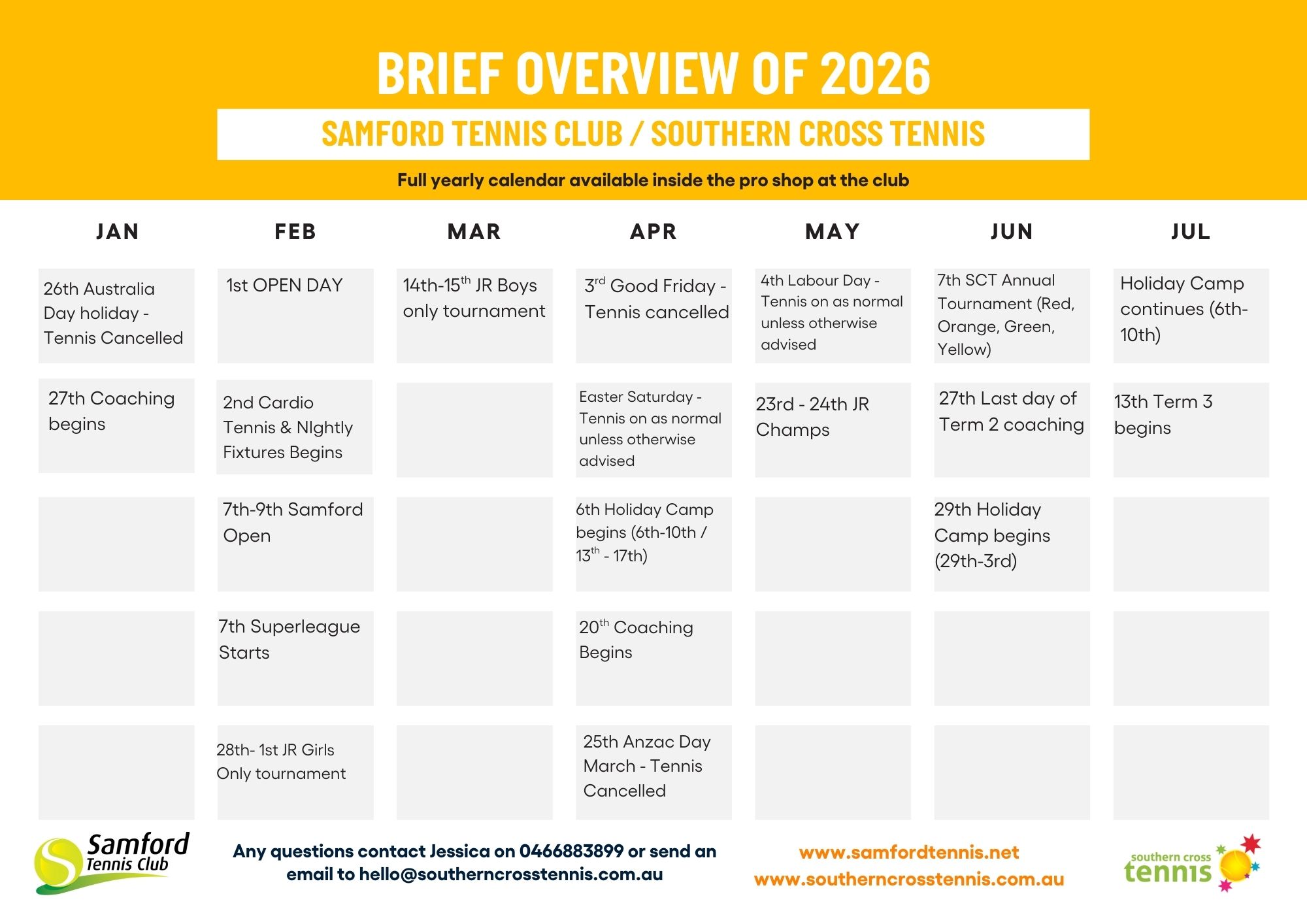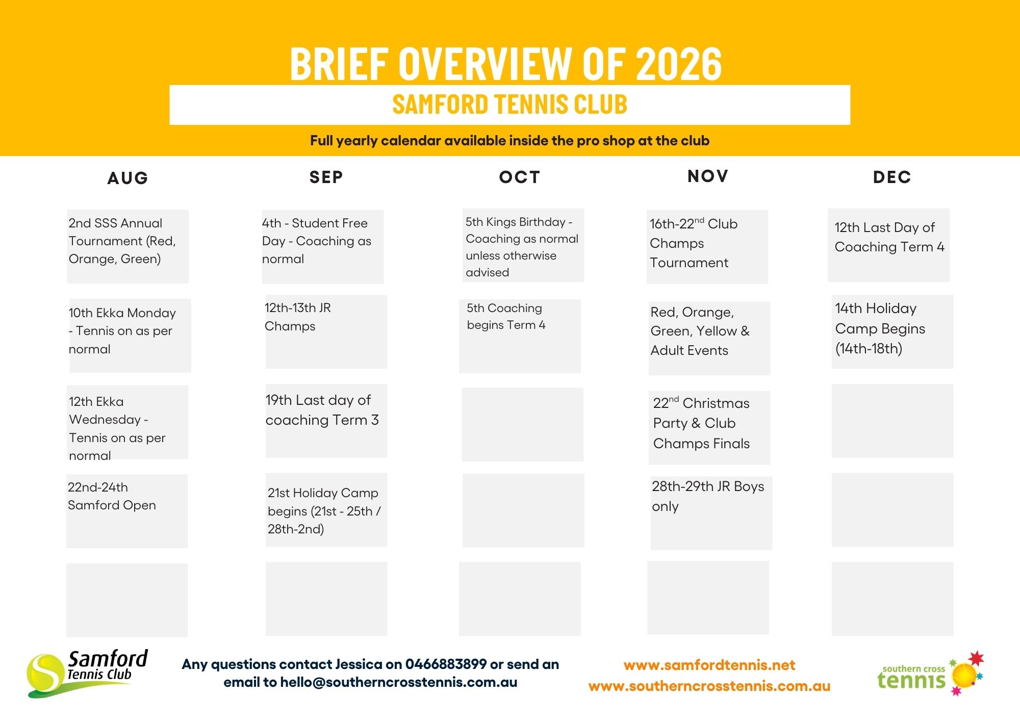 Samford Tennis Club Membership 2026 – Thinking of becoming a member of Samford Tennis Club? Wishing to play Adult fixtures in the new year? Please contact Jessica on 0466883899 or email to hello@southerncrosstennis.com.au.